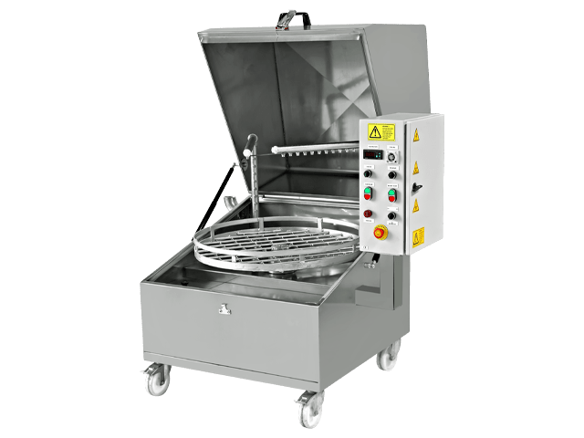 YM-1000 amortisörlü döner sepetli parça yıkama makinesi, en zorlu kirlenmelerle bile başa çıkan sağlam ve yüksek kapasiteli bir çözümdür. Otomotiv, uçak, gemi, savunma ve metal sanayileri gibi sektörlerde motor blokları, üretim sonrası demir talaşı ve yağları etkin bir şekilde temizler.