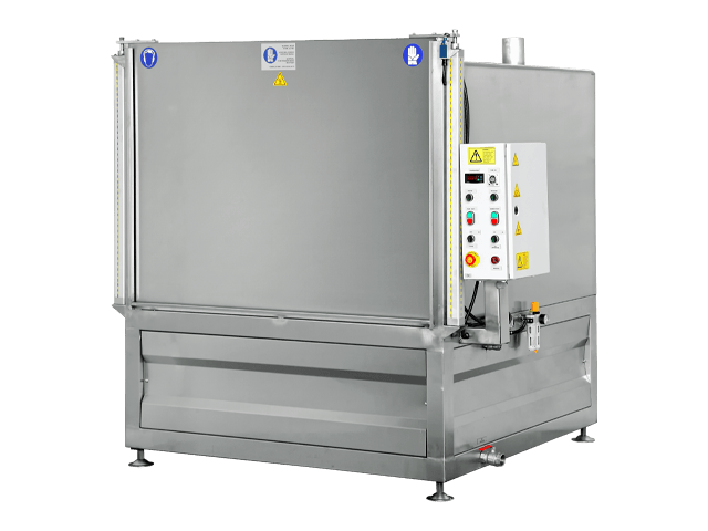 Kirli parçalar, kızaklı bir sistem aracılığıyla sepete yerleştirilir ve kabin kapatılarak yıkama işlemi başlar.