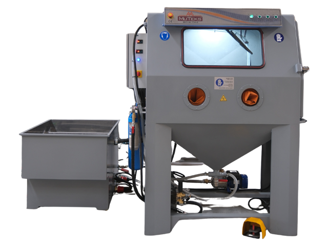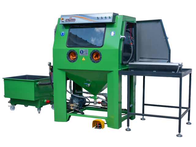 Muteks sulu kumlama makineleri, dayanıklılık ve verimlilik odaklı tasarlanmıştır. Tamamen AISIKROM gövde yapısı ile korozyona karşı maksimum direnç gösterirken, 200 Bar yüksek basınç pompası ile en inatçı katmanları bile saniyeler içinde temizler.